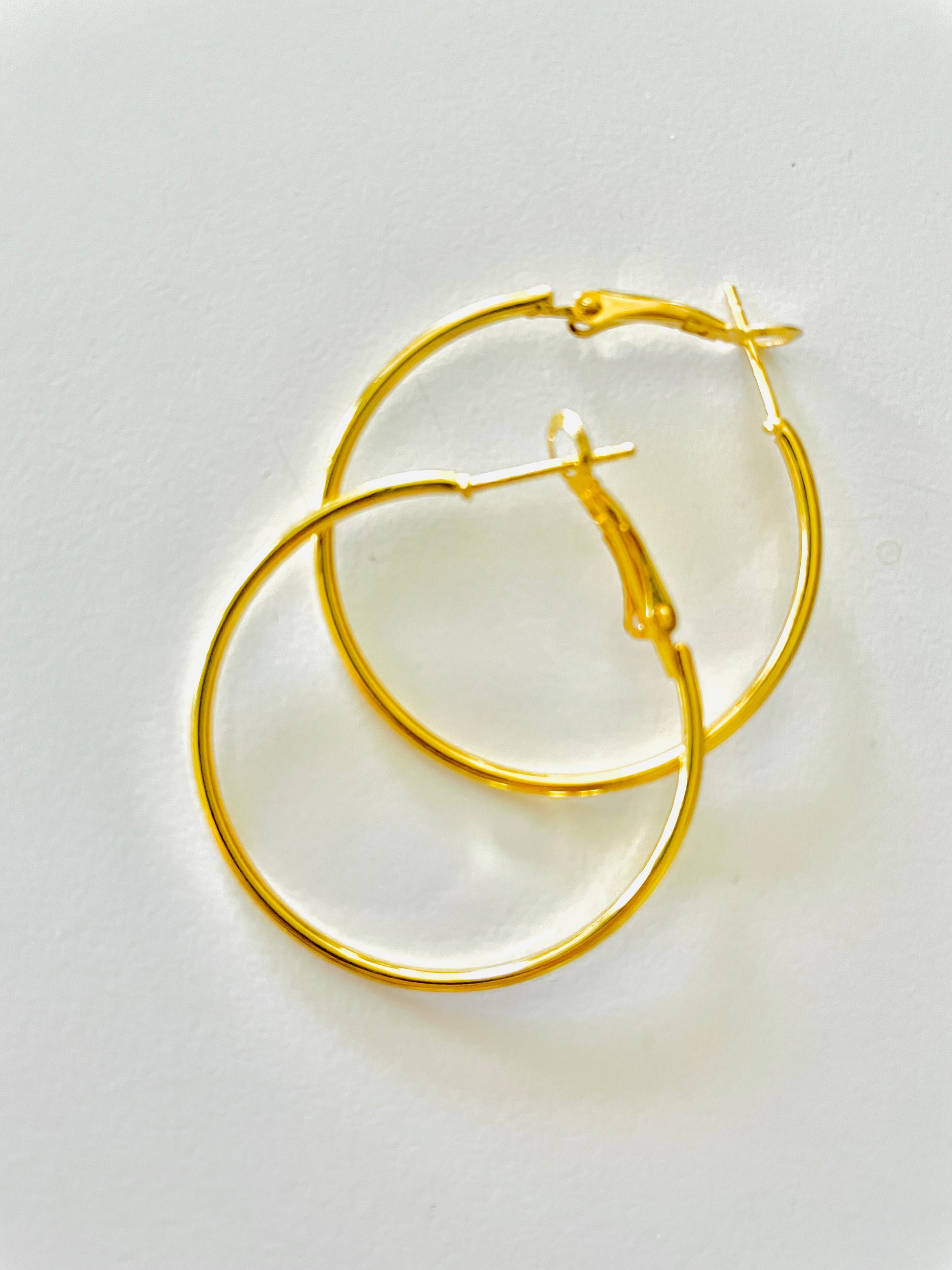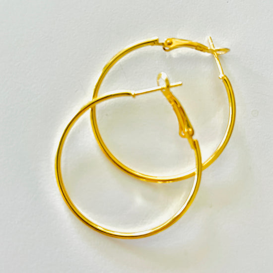 Our stunning 14K gold plated hoop earrings are just the right size and lightweight style for daily elegance!