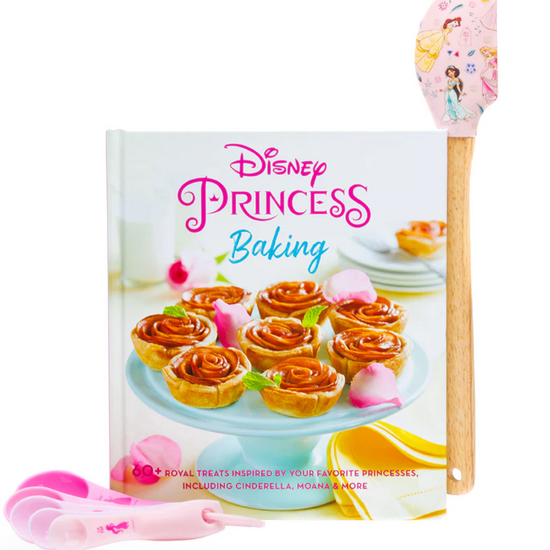 Baking has never been so magical with this charming Disney Princess Baking Gift Set featuring over 60 tasty, easy-to-follow recipes in a cookbook inspired by the Disney princesses. From delicate buttery cookies to fancy, decadent cakes, this cookbook includes all manner of delicious Disney-themed treats! Whip up a batch of Tiana’s Famous Beignets. Make a cake inspired by Walt Disney's classic princess castle. Be a part of Ariel’s world with her seashell-inspired almond cookies.