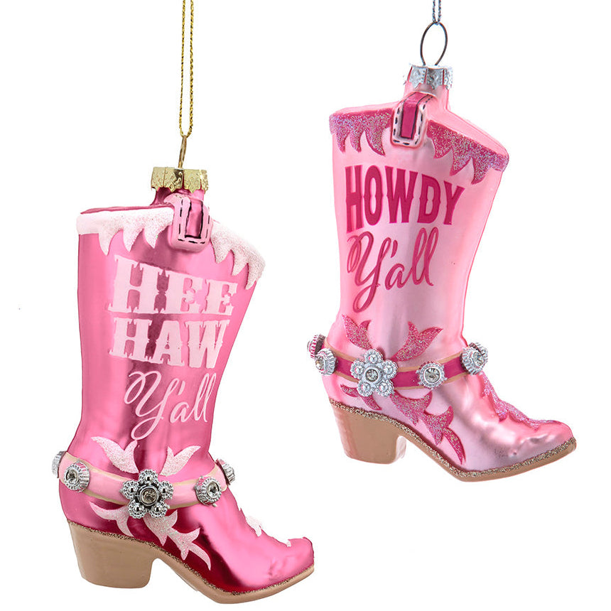 Glass Pink Cowboy Boots Ornaments, Asstd.