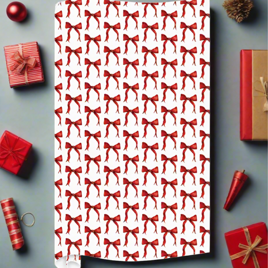 Holiday Red Bow Wrapping Paper by Rosanne Beck
