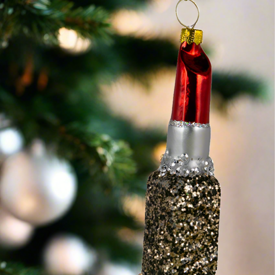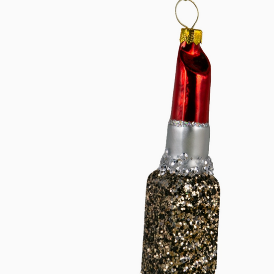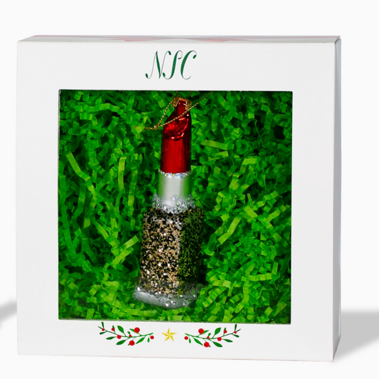 Red is the #1 lipstick color in the world and looks great on everyone! This beautiful Red Lipstick Glass Ornament comes in a very chic glittery gold and black squared case with a silver glittery tube. So glam you'll have to get one for yourself and one for your friend!