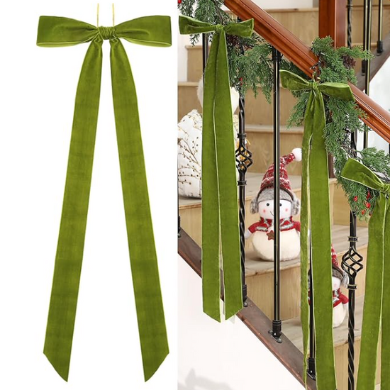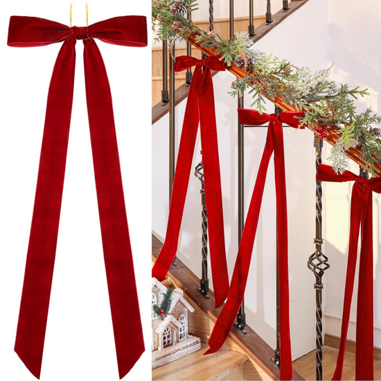 RIBBON IS TRENDING THIS YEAR - Use these beautiful Set of 6 Velvet Bow and Ribbon Decor throughout your home for a stunning holiday look in red or green this year! They are lightweight and easy to move around. Get several sets to do all your decorating.