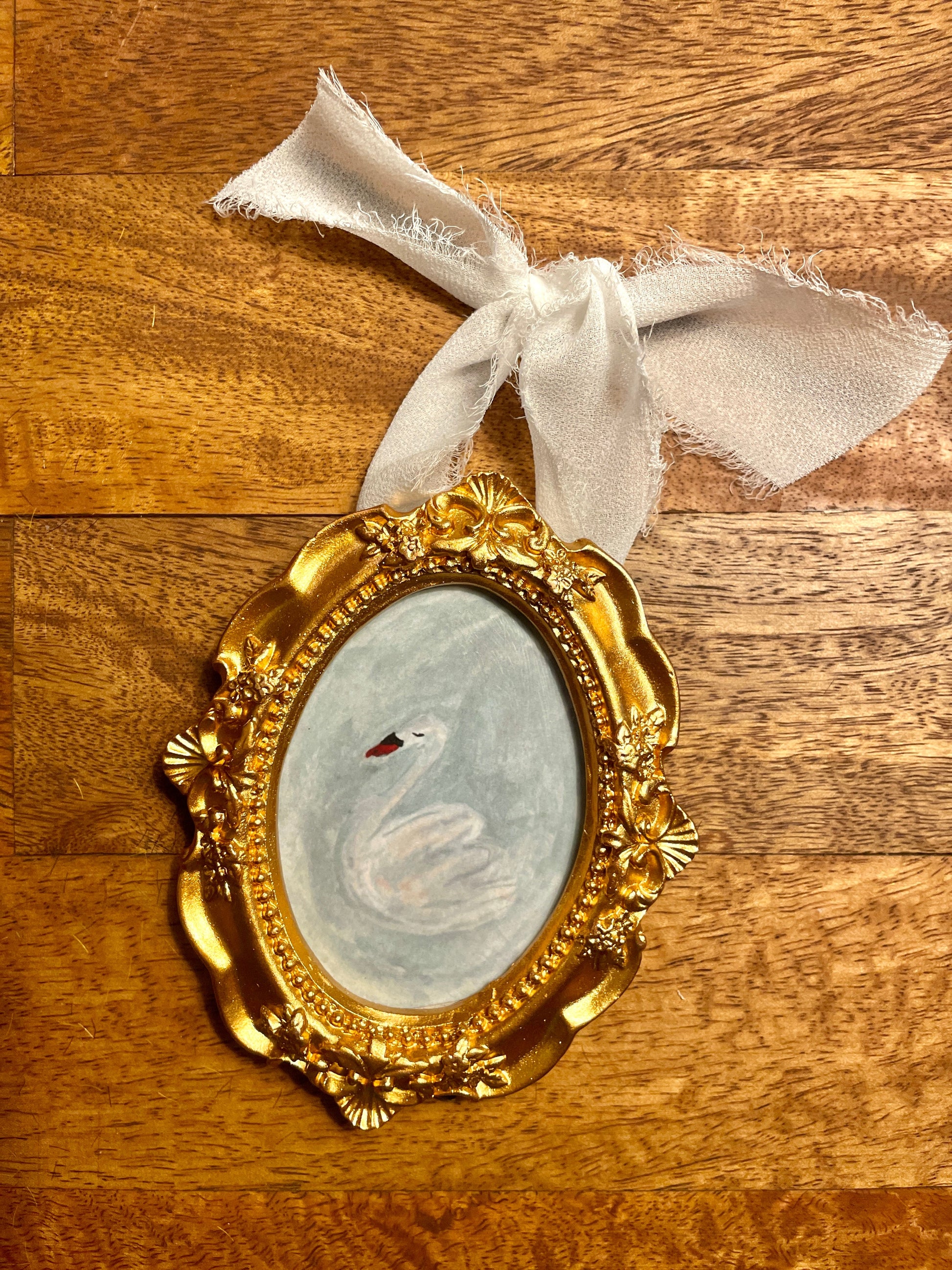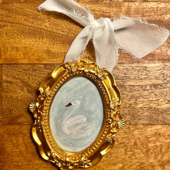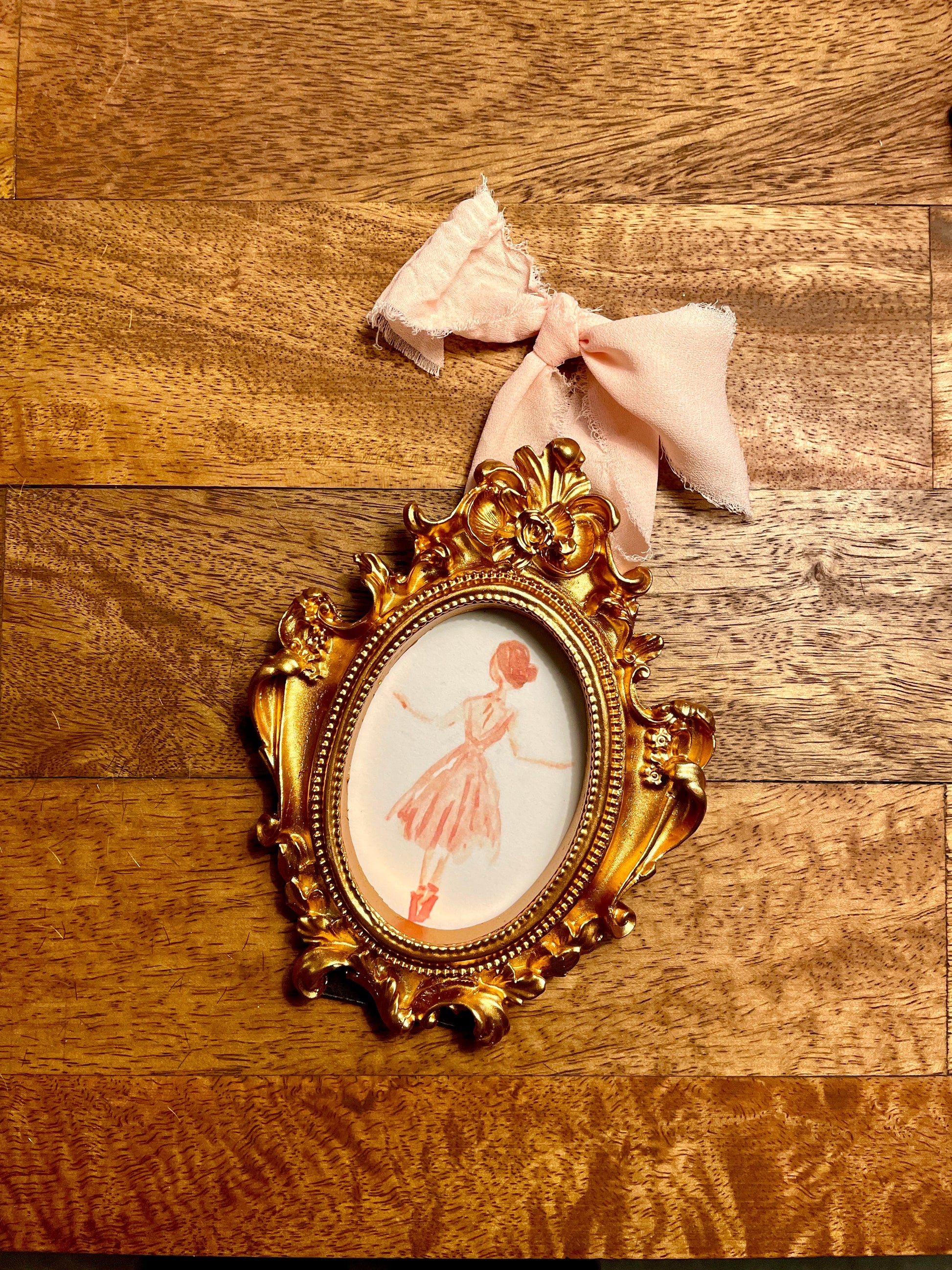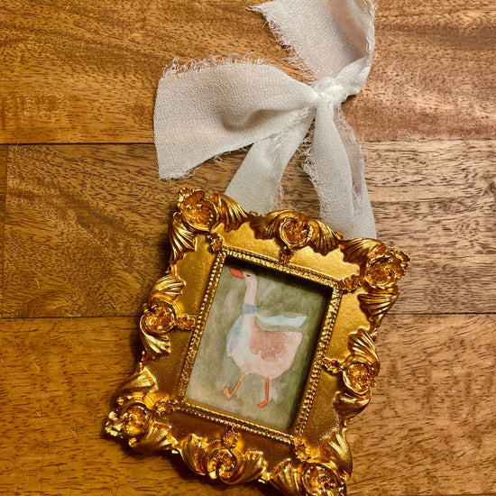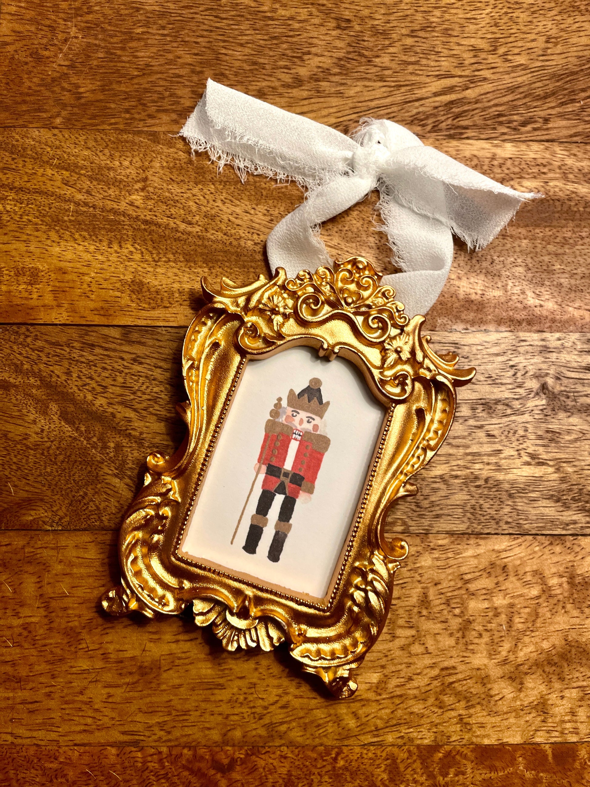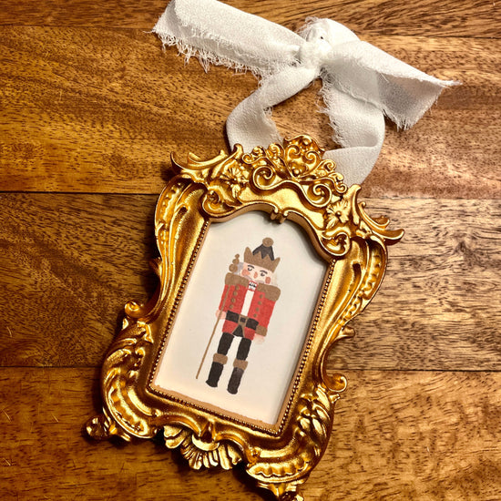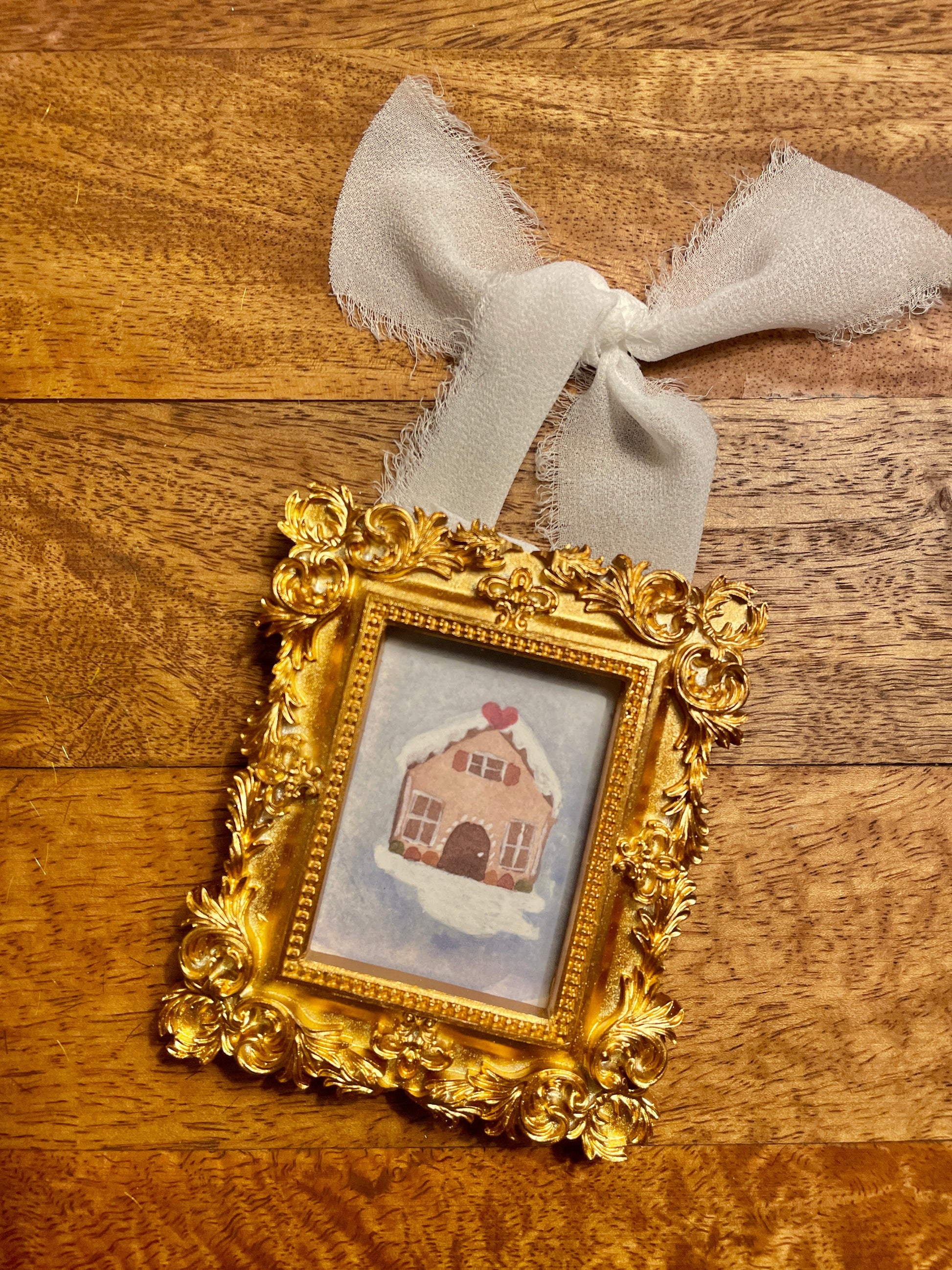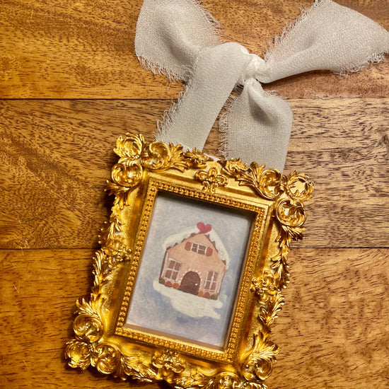 Each measuring under 5 inches, our gilded framed picture ornaments are intended to lend a bit of holiday charm to the home, adding a vintage note to your everyday moments.